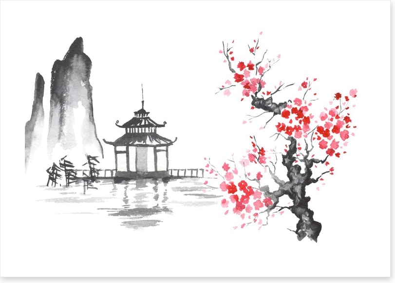 Blood moon and pagoda